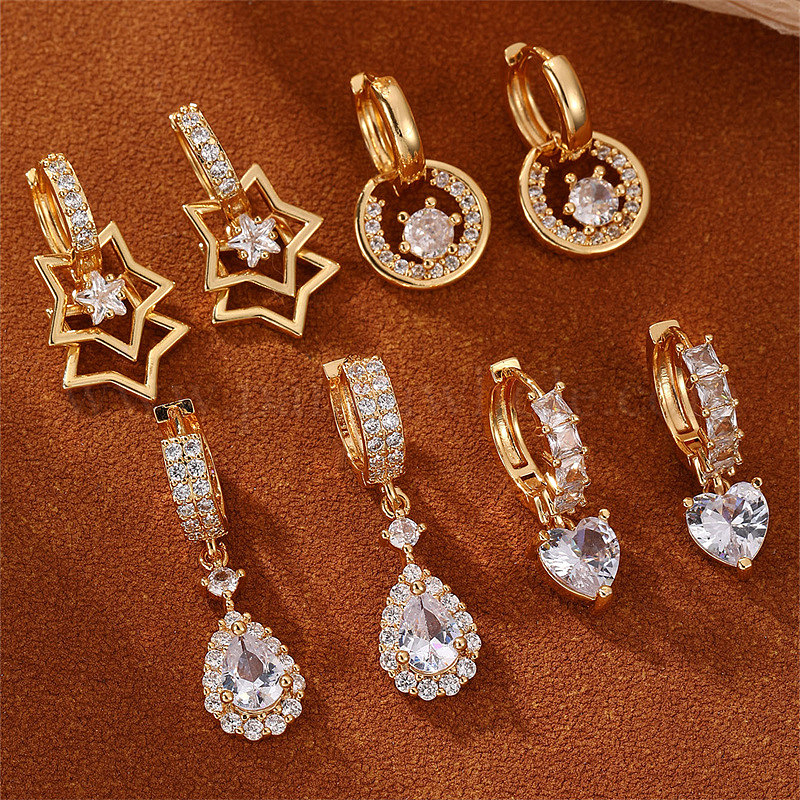 Серьги-кольца из сплава и хрустальных стразов, золотые