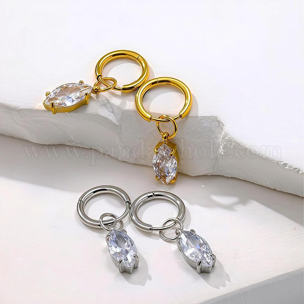 304 серьги-кольца из нержавеющей стали с прозрачным кубическим цирконием, лошадиный глаз (03BQE1)