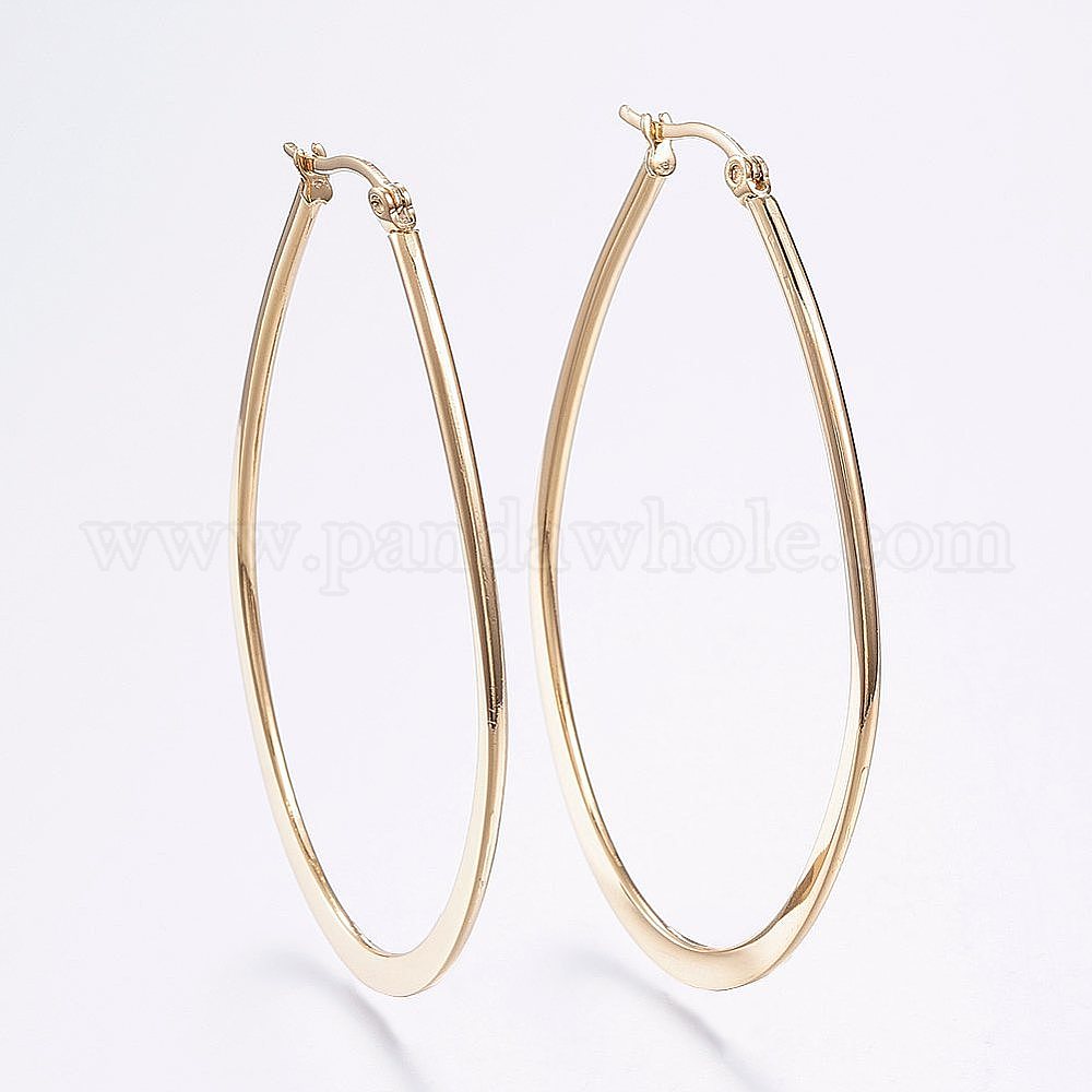 • Золотой Серьги из 304 нержавеющей стали, Плоско-овальные, золотые, 59~61x1~2 мм , штифт: 0.7x1 мм