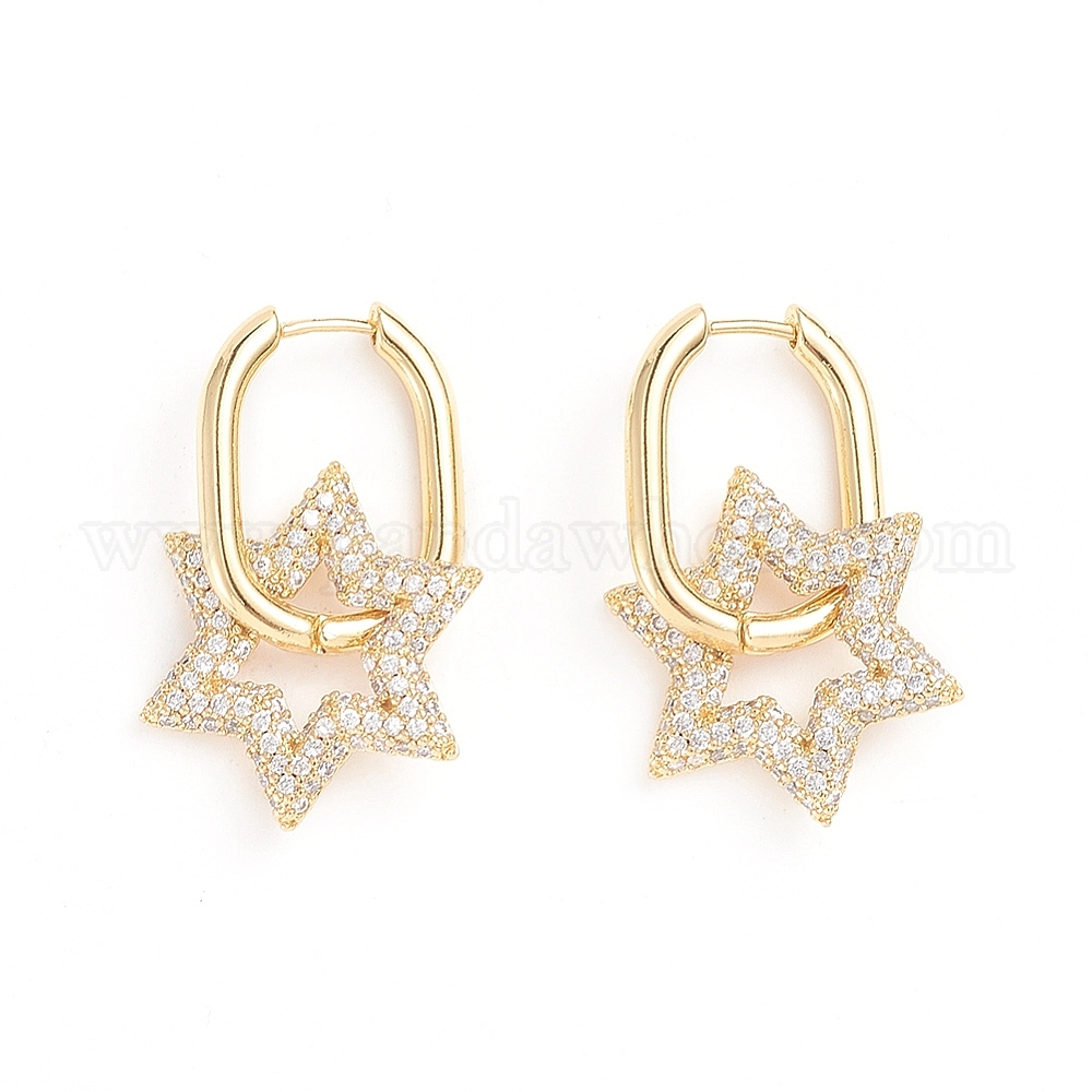 Серьги-кольца из латуни с микро-паве из фианита, долговечный, для евреев, звезда Давида