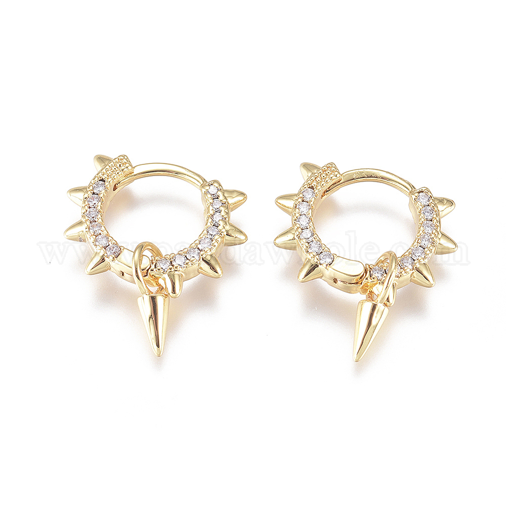 • Золотой Латунные серьги-кольца Huggie в стиле панк, с четким кубического циркония, золотые, 17x13x3 мм, штифты : 0.8 мм