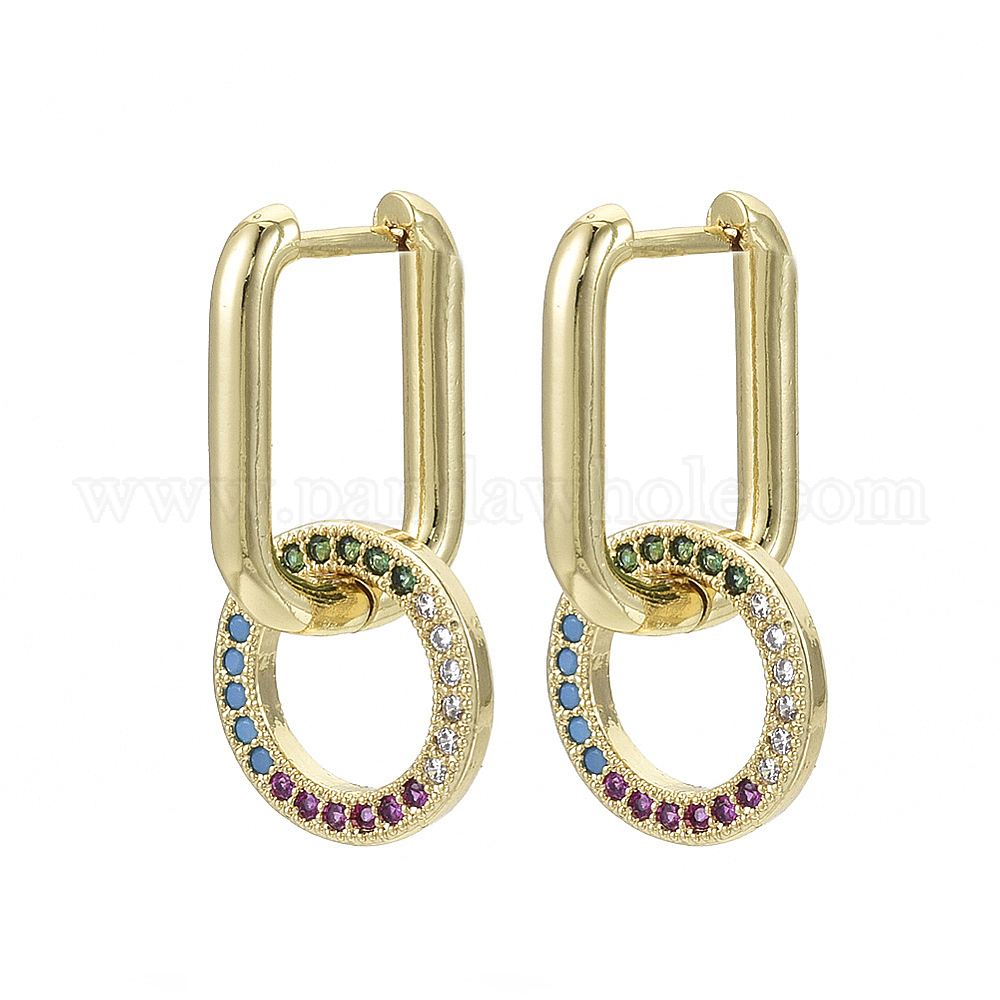 Серьги-кольца Huggie с подвесками из латуни с кубическим цирконием и кубическим цирконием, без никеля , кольцо, реальный 16 k позолоченный