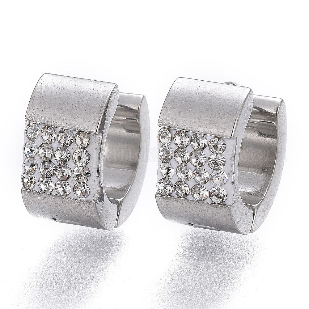 • Нержавеющая Сталь Цвет 304 обруч серьги из нержавеющей стали замке, с полимерной глиной кристалла горного хрусталем, U-образный, цвет нержавеющей стали, 12.5x13.5x7 мм, штифты : 1.2 мм