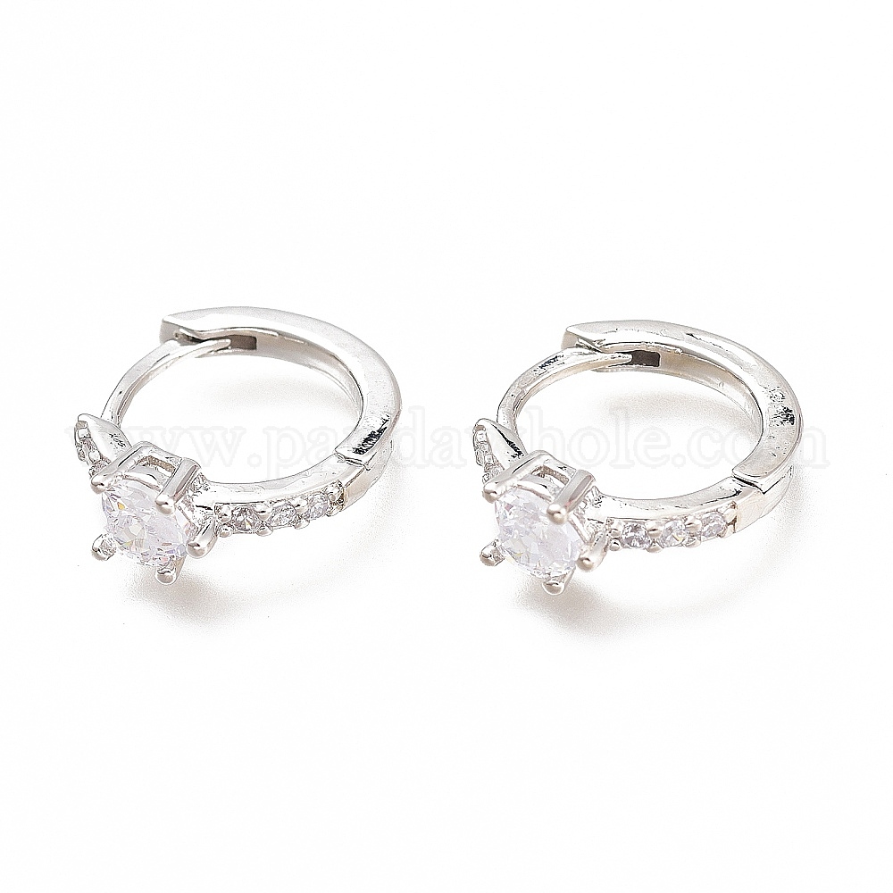 Серьги-кольца из латуни с микропаве из прозрачного кубического циркония, долговечный, кольцо с сердцем