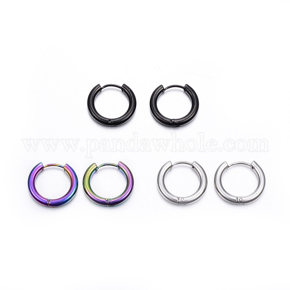 • Нержавеющая Сталь Цвет Устойчивые к потускнению 202 серьги-кольца Huggie Hoop из нержавеющей стали, гипоаллергенные серьги, с 316 хирургическим стержнем из нержавеющей стали, цвет нержавеющей стали, 10 датчик, 15x2.5 мм, штифты : 1 мм
