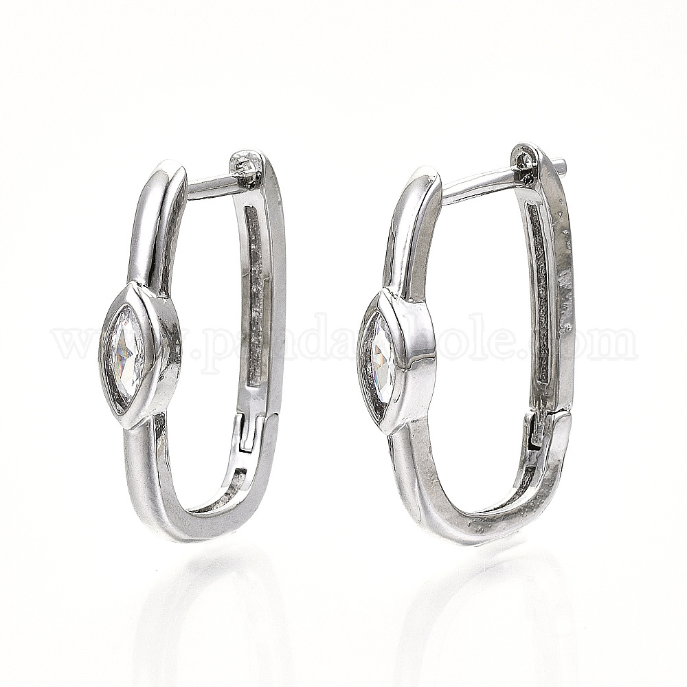 Серьга-кольцо Huggie из латуни с прозрачным фианитом и прозрачным фианитом, без никеля , овал с конским глазом