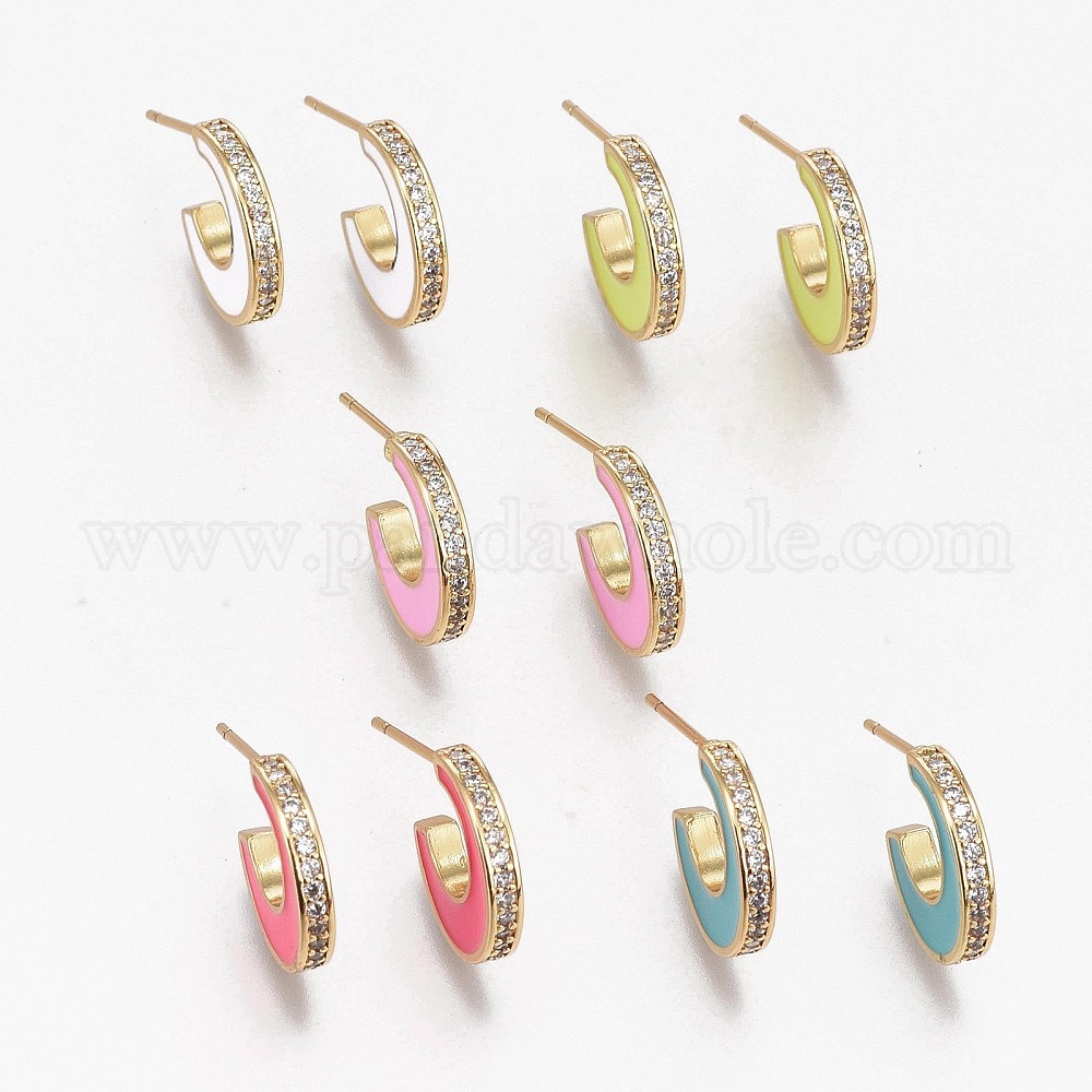Серьги-кольца из латуни с прозрачным кубическим цирконием и прозрачным паве, с эмалью и ушными орехами, долговечный, луна, реальный 18 k позолоченный