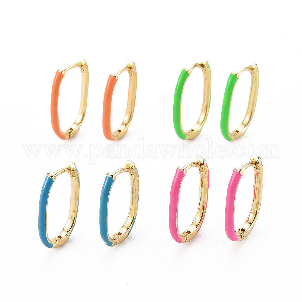 Серьги-кольца Huggie из латуни с эмалью, без кадмия, без никеля и без свинца, овальные, реальный 16 k позолоченный