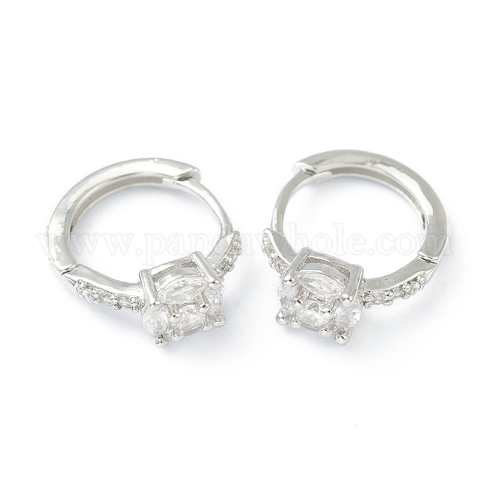Серьги-кольца из латуни с микропаве из прозрачного кубического циркония, цветок