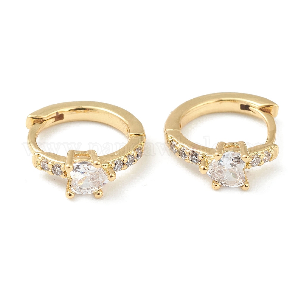Серьги-кольца из латуни с микро-паве из фианита, кольцо с сердцем