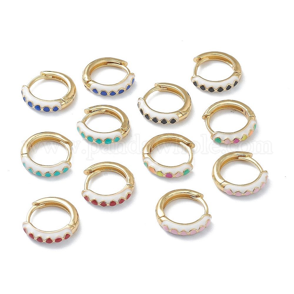 • (52) Непрозрачная лаванда Серьги-кольца Huggie из латуни с эмалью, долговечный, кольцо с ромбом, золотые, разноцветные, 14x3 мм, штифты : 0.8 мм