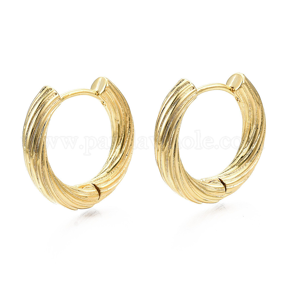 • Настоящее золото 18K Латунные английском замке Серьги-кольца, без никеля , текстурированная форма кольца, реальный 18 k позолоченный, 22x3.5 мм, штифты : 1 мм