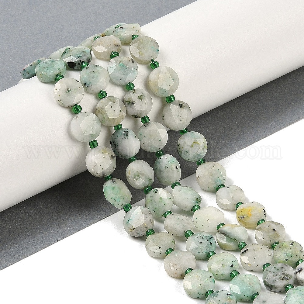 Природные хризоколлу бисер нитей, граненый пятиугольный разрез, плоско-круглые, с бисером