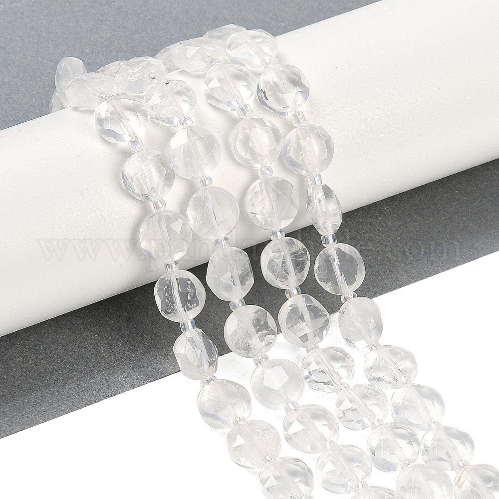 Природных кристаллов кварца бисер нитей, граненый пятиугольный разрез, плоские круглые бусины из горного хрусталя, с бисером