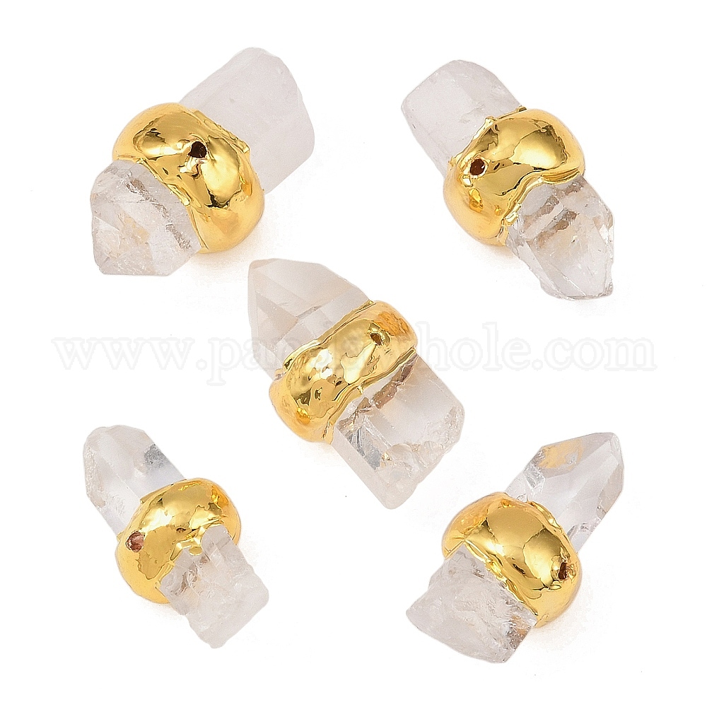 Природный кристалл кварца бусины, с латунной фурнитурой , самородки, золотые