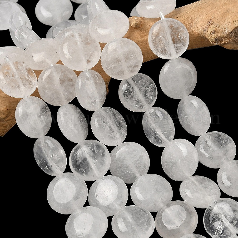 Нити бусин из натурального ангольского кварца, горного хрусталя, плоско-круглые