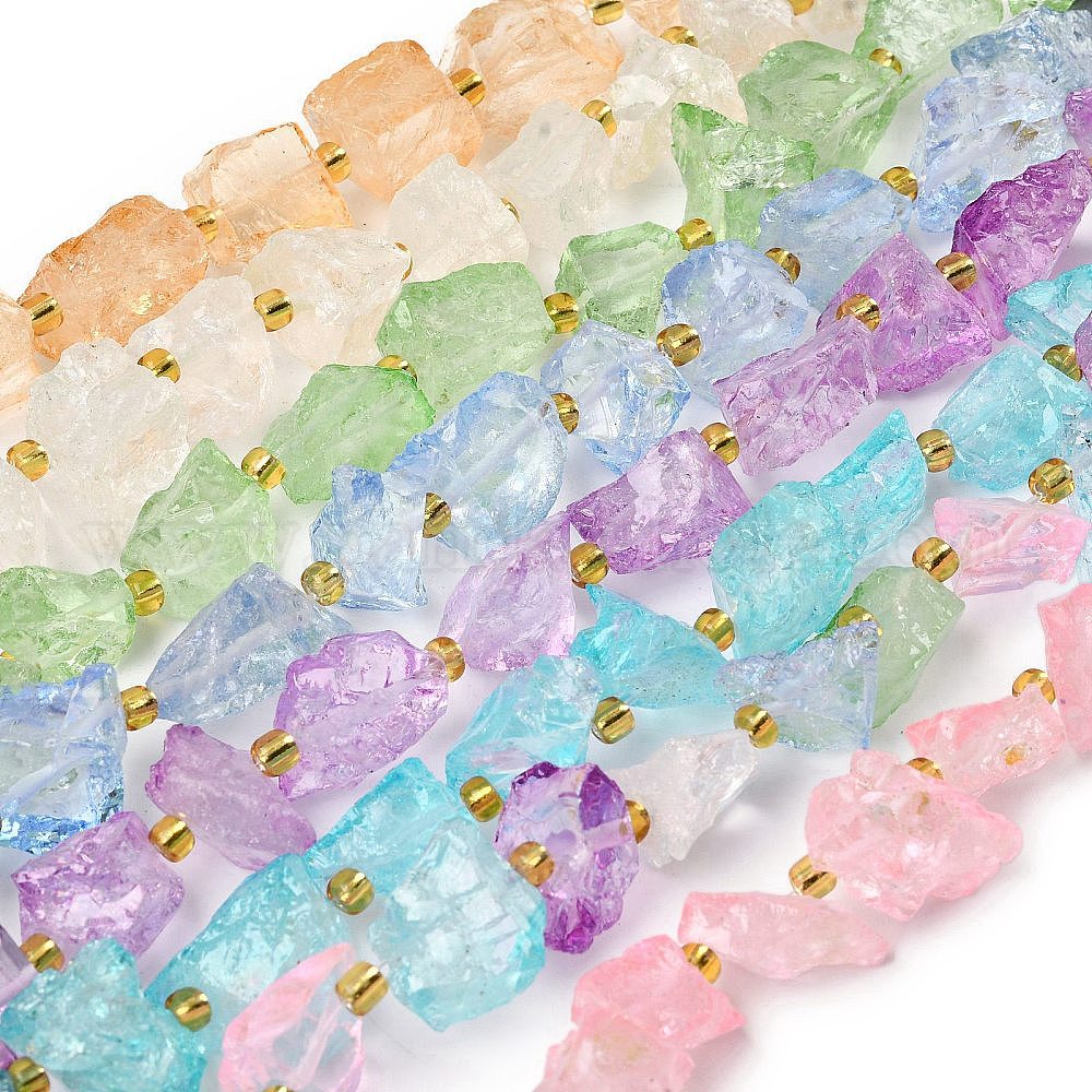 • Pink Сырой грубый натуральный кристалл кварца, окрашенные, с бисером, самородки, розовые, 8~18x9~15x8~11 мм, отверстие : 1.5~2 мм, около 12~13 шт / нитка, 7.48''~7.68'' (19~19.5 см)