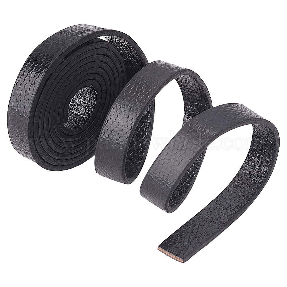 • Черный 1м плоский шнур из искусственной кожи, кожаный шнур ювелирных изделий, ювелирные изделия DIY делает материал, чёрные, 9.5 мм, около 1.09 ярдов (1 м) / шт