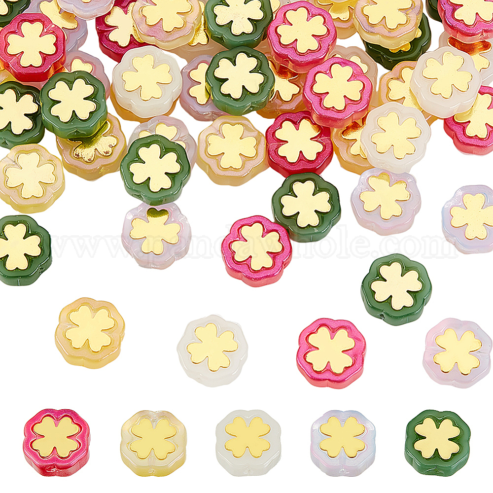 • (52) Непрозрачная лаванда 60шт 5 стиль имитация нефрита стеклянные бусины спрей-окрашенные, с латунной фурнитурой золотого цвета, клевер, на день святого патрика, разноцветные, 12x12x4.5 мм, отверстие : 1 мм, 12 шт / стиль
