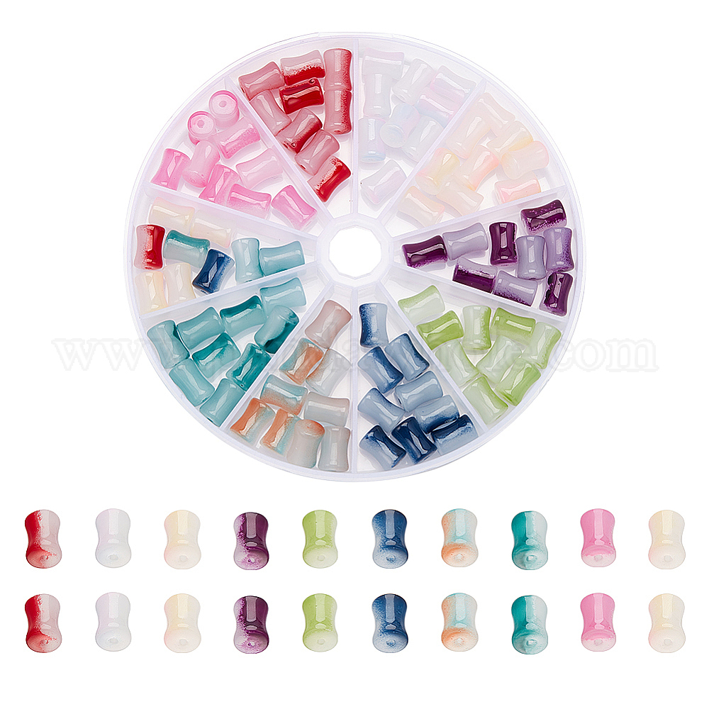 стеклянные бусины в форме бамбуковой палочки: около 8~8.5мм в диаметре, 11.5~12 мм длиной, отверстие : 1.1 мм, 10 цветов, 9 шт / цвет, 90шт;