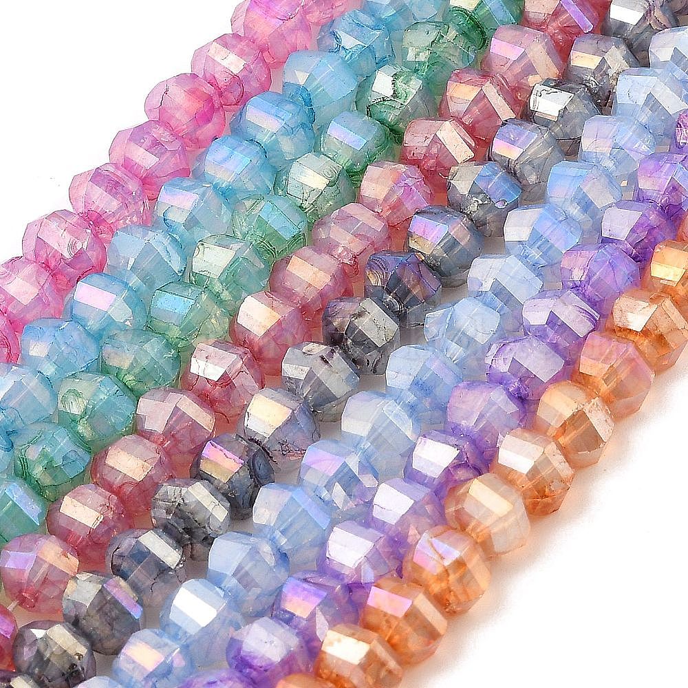 Стеклянные бусины, имитация нефрита , граненые, с покрытием AB цвета, рондель