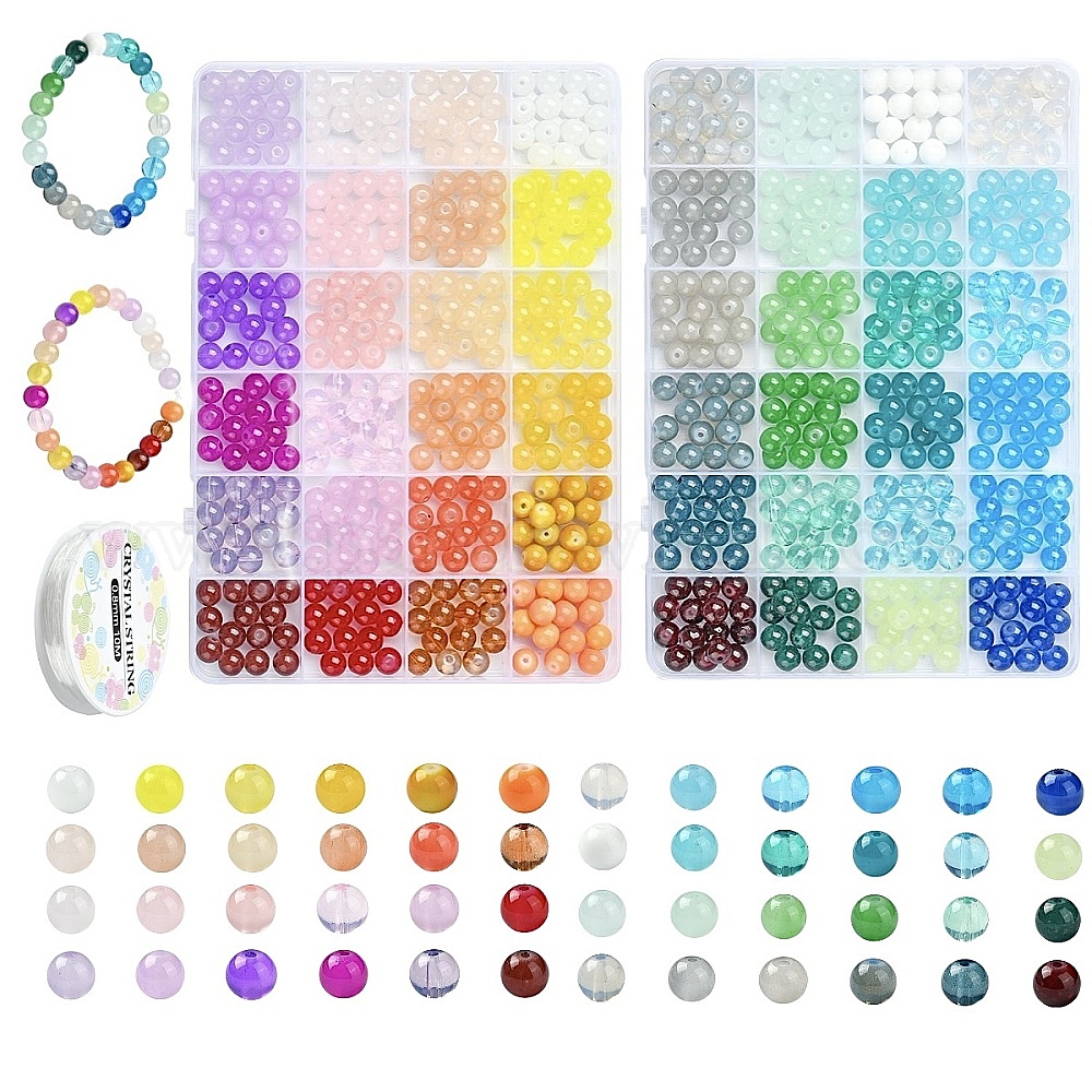 круглый шарик: около 8~9 мм, отверстие : 1.3~1.6 мм, 48 цветов, 15 шт / цвет, 720шт;