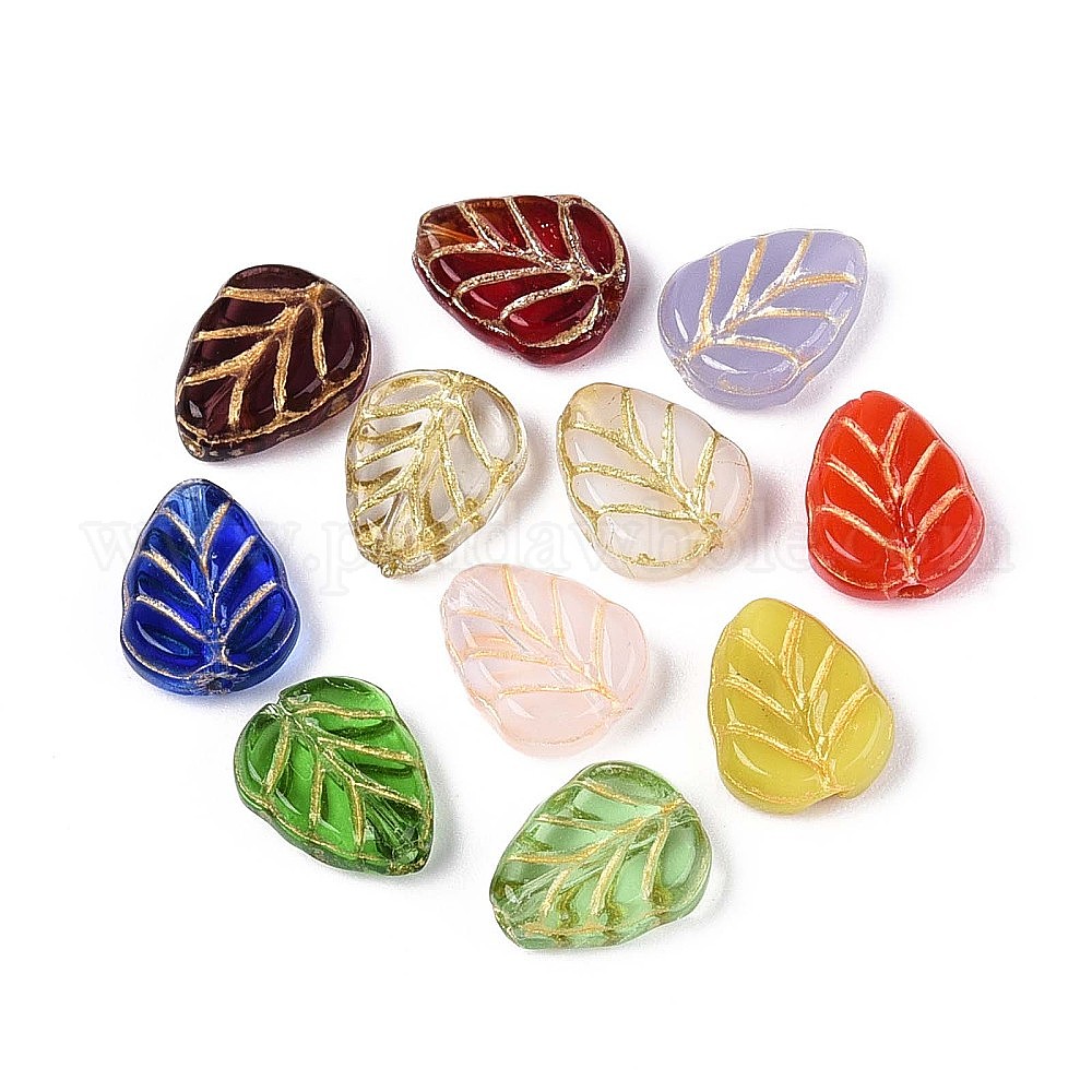 Прозрачные стеклянные бусины, лист, золотой металл обвитыми