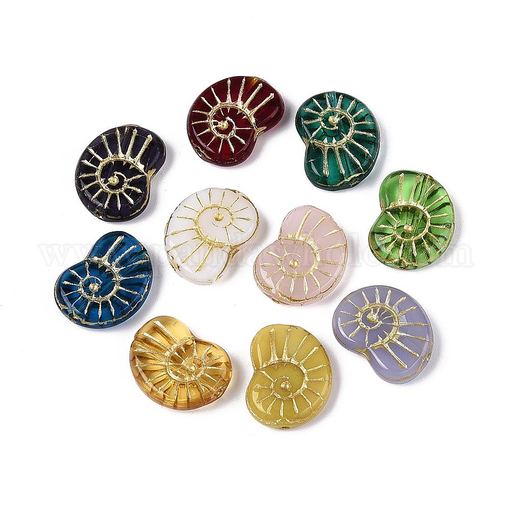 Стеклянные бусины, раковина, золотой металл обвитыми