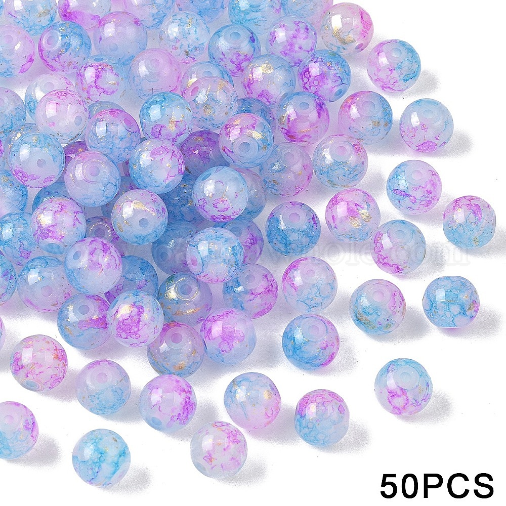 Стеклянные бусины из имитации нефрита, круглые, золотой фольгой