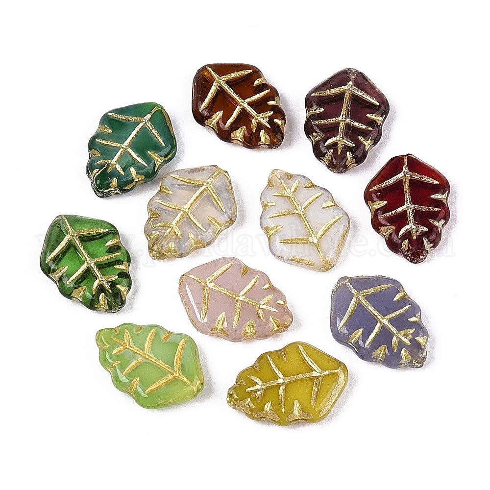 Лист стеклянные бусины, золотой металл обвитыми