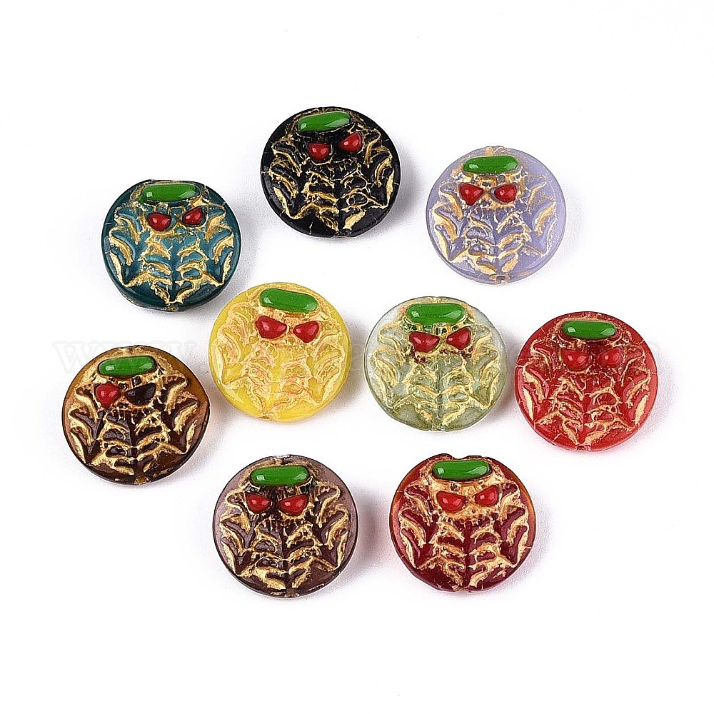 Плоский круглый с грибовидными стеклянными бусинами, золотой металл обвитыми