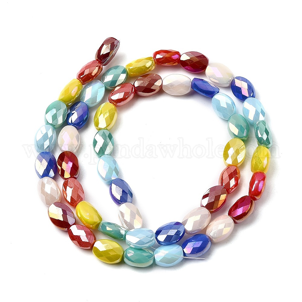 Гальванизировать непрозрачные сплошной цвет стеклянные бусы пряди, овальные, градиент цвета, граненые