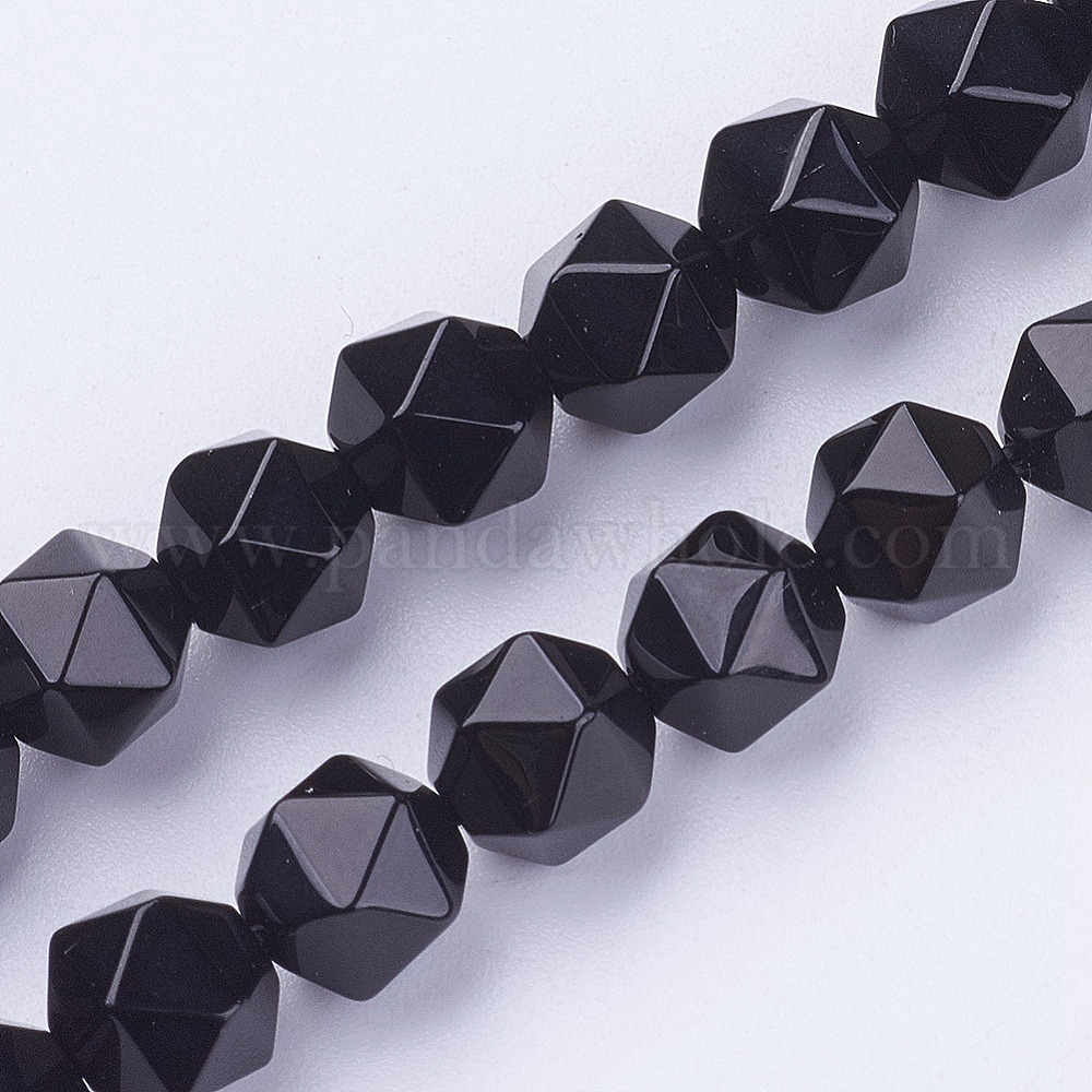 Непрозрачное стекло бисер нитей, имитация черного агата (окрашенный и нагретый), граненые, круглые