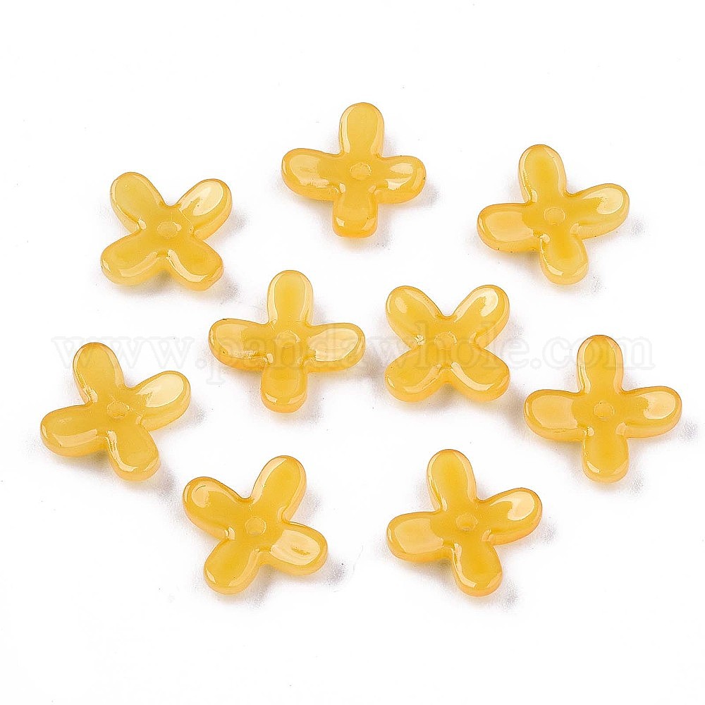 • Золотистый Окрашенные бусины из стекла, имитация нефрита, цветок османтуса, золотые, 12x9.5x3.5 мм, отверстие : 1 мм