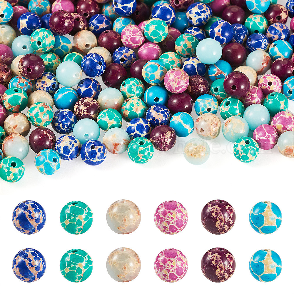 96 шт. 6 стили окрашенные натуральные и синтетические бусины из императорской яшмы, круглые (0324GB)