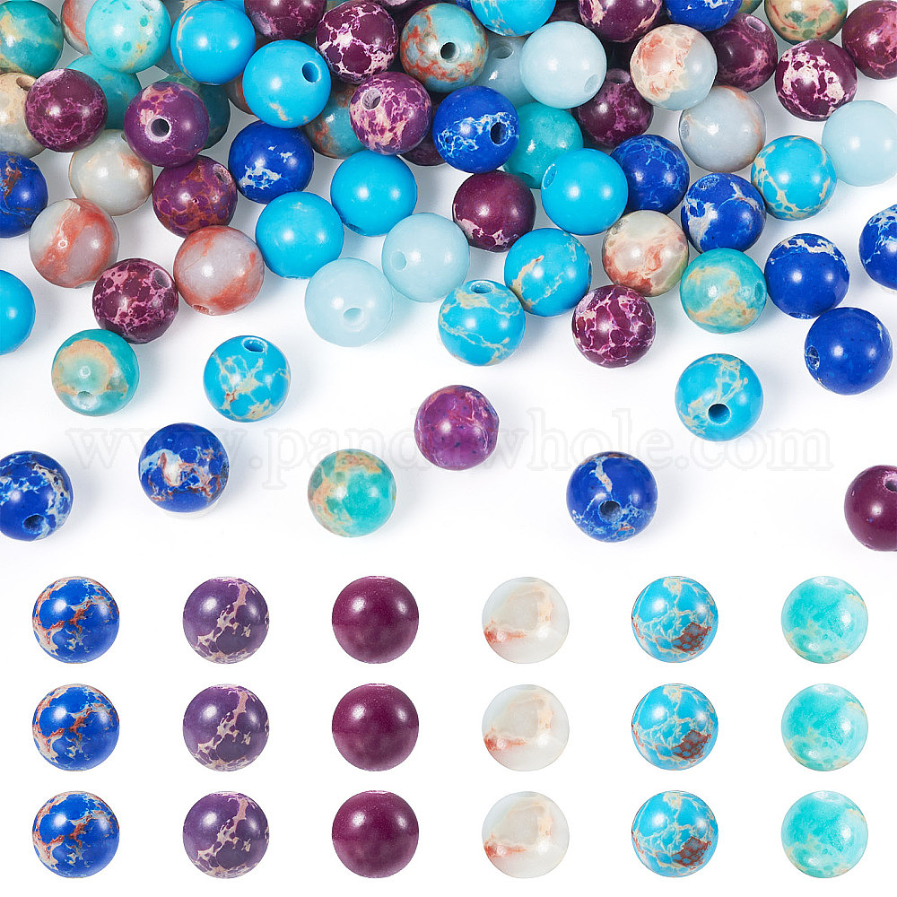 180 шт. 6 стили окрашенные натуральные и синтетические нити бусин императорской яшмы, круглые