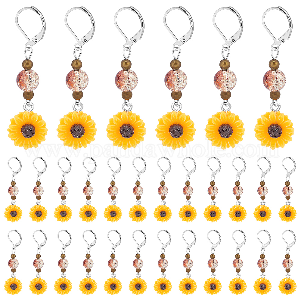 30шт. Подсолнух, смоляной маркер для стежков со стеклянной бусиной, с 304 стали и латуни выводы из нержавеющей