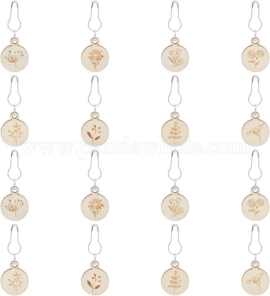 8 шт. 8 плоский круглый стиль с цветочными деревянными подвесками с замком маркер стежка, с латунной контактный, для вязания инструментов