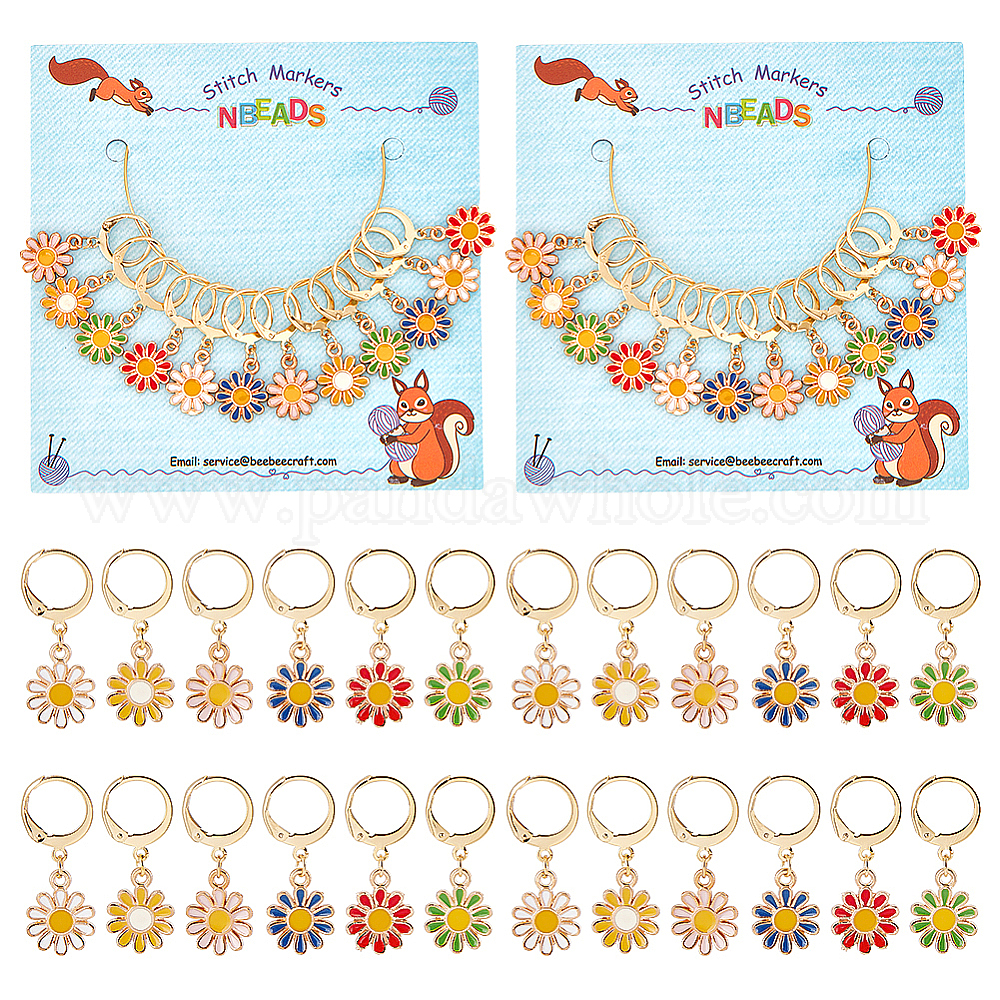 • (52) Непрозрачная лаванда Брелки-подсолнухи из сплава эмали маркеры петель с замком, с золотым оттенком 304 кольцо из нержавеющей стали, разноцветные, 3.1 см, 6 цветов, 2 шт / цвет, 12 шт / комплект