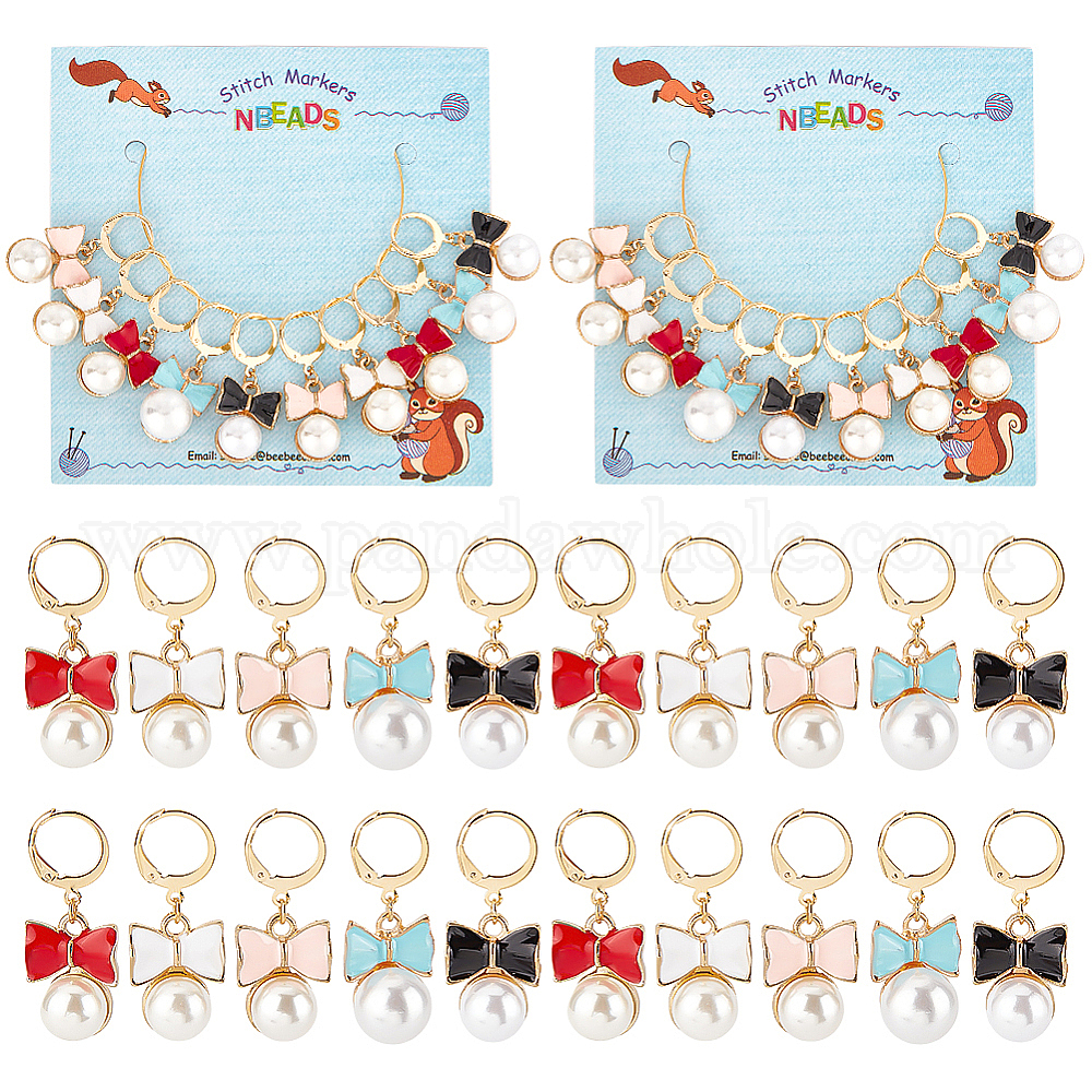 Маркеры петель с бантом из эмали из сплава, с золотым оттенком 304 кольцо из нержавеющей стали, с бусинами из искусственного жемчуга из смолы