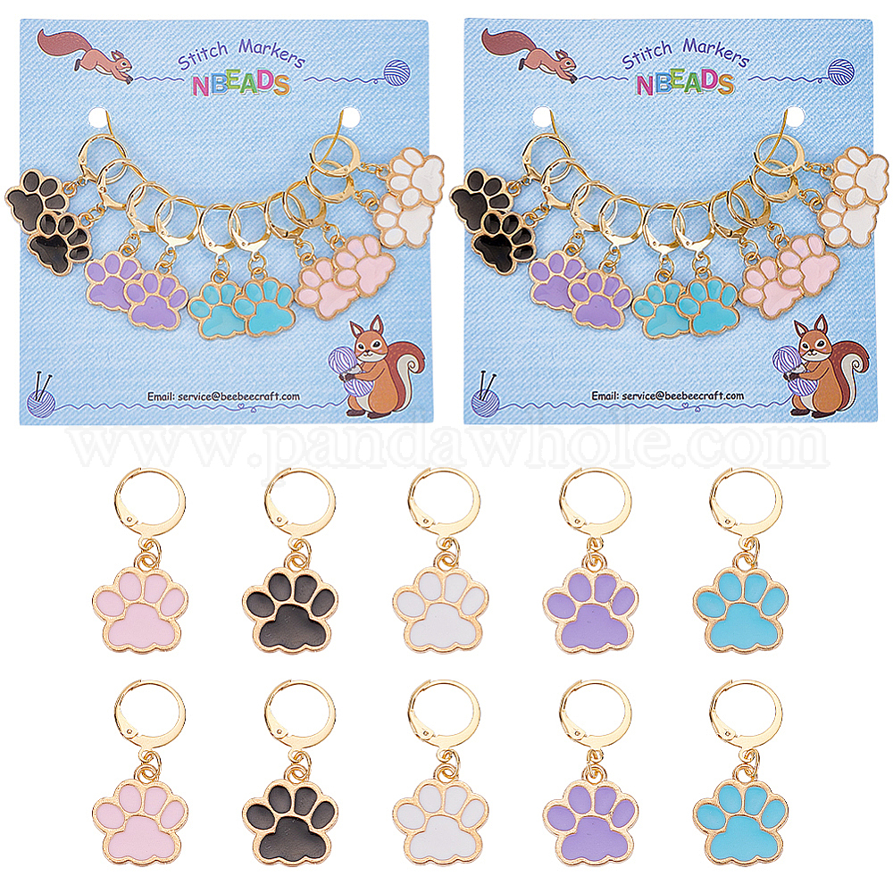 Маркеры для стежков с принтом собачьей лапы из сплава эмали для домашних животных, золотистый тон 304 маркер стежка с застежкой-карабином из нержавеющей стали