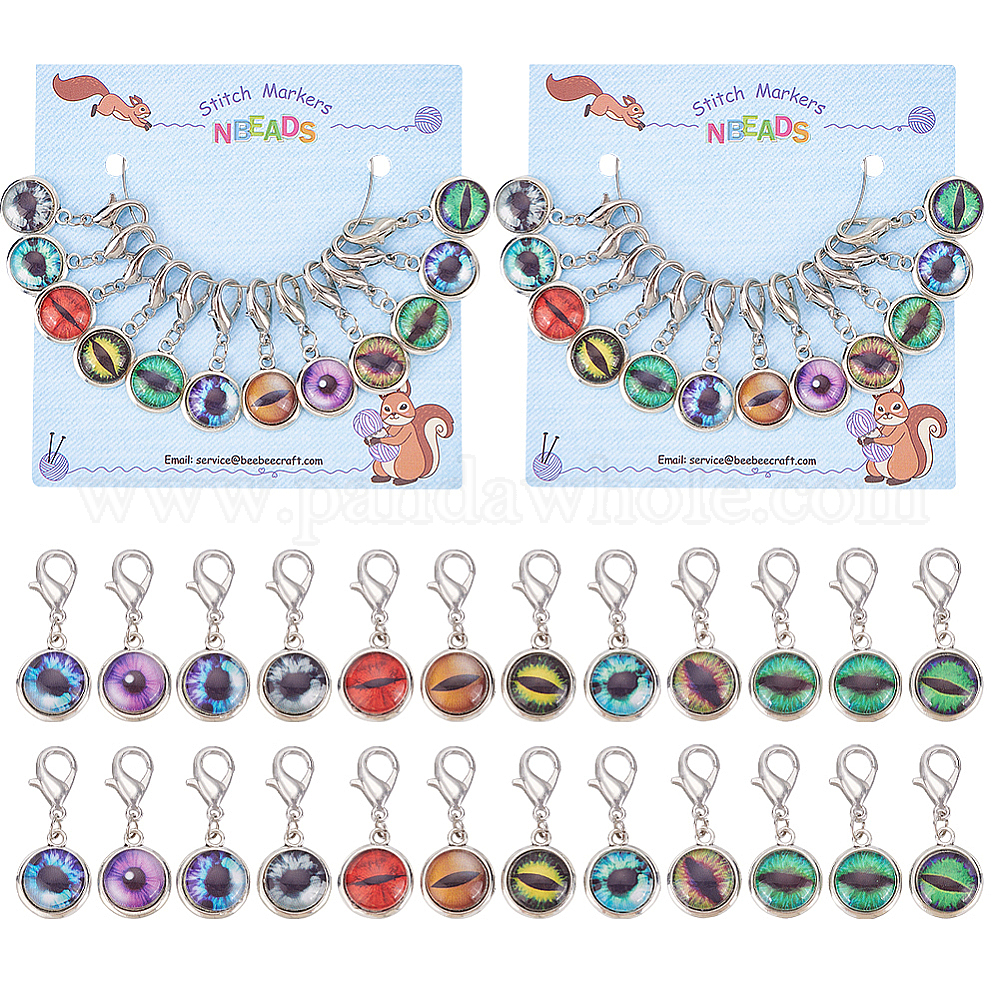 12шт стеклянные плоские круглые маркеры петель с замком, застежка-карабин из цинкового сплава
