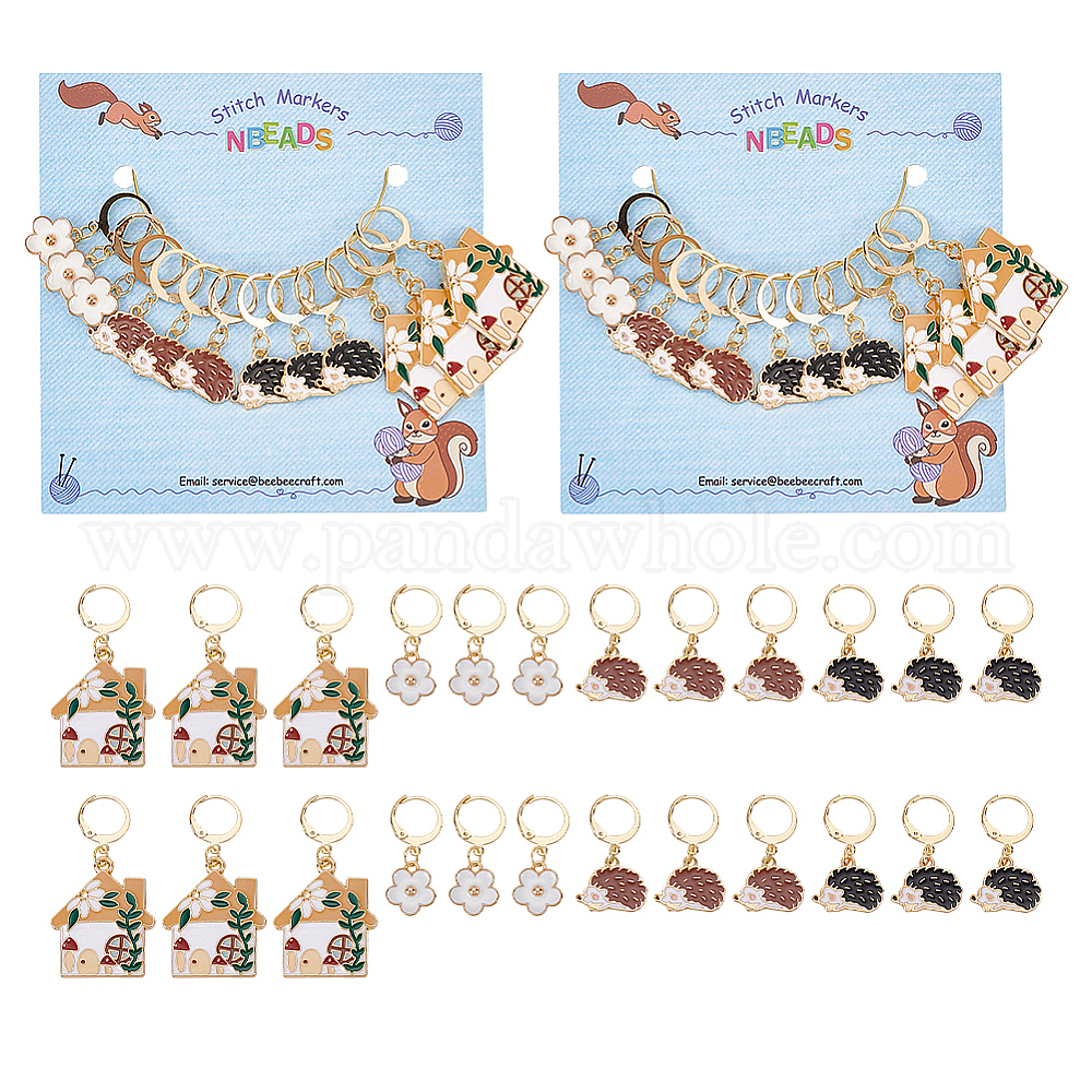 12 маркеры петель с замком в виде ежика, домика и цветка из легированной эмали, золотистый тон 304 маркер стежка с застежкой-карабином из нержавеющей стали (02G1BB)