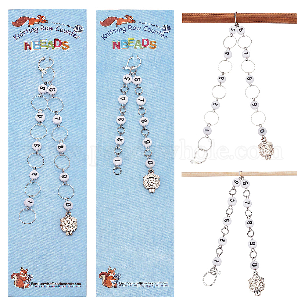 2 шт 2 стиль овечка амулет вязание ряд счетчик цепочек, сплав, акрил и латунь 0~9 пронумерованный маркер стежка для отслеживания хода выполнения проекта