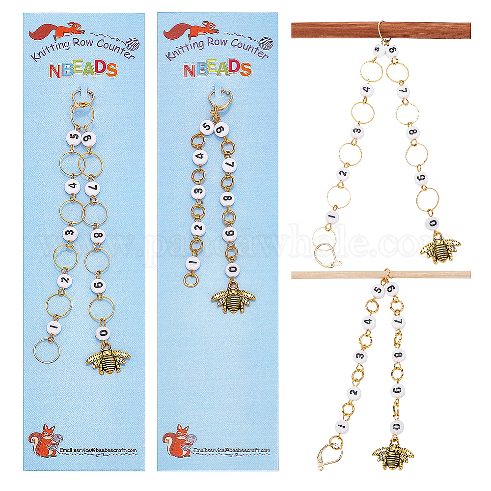2 шт 2 стиль пчела амулет вязание ряд счетчик цепочек, сплав, акрил и латунь 0~9 пронумерованный маркер стежка для отслеживания хода выполнения проекта