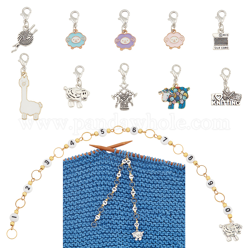1 набор акриловых бусин для вязания, счетчики рядов, цепочки и сплав, эмалевые овцы и тканые тематические подвески, маркеры для фиксации петель