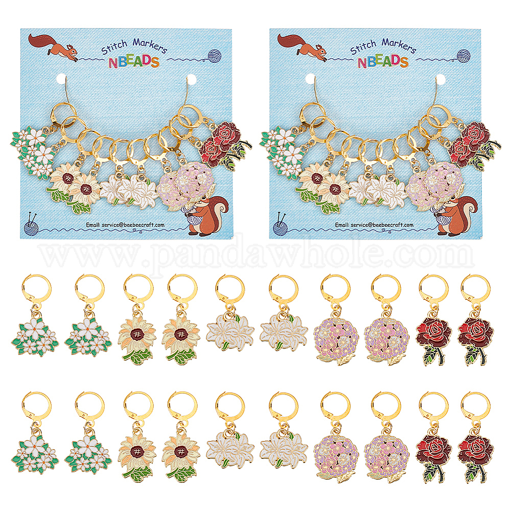 • (52) Непрозрачная лаванда Маркеры петель с замком в виде цветка из сплава эмали, 304 маркер с застежкой из нержавеющей стали, подсолнух/лилия/роза, разноцветные, 3.4~4 см, 5 стиль, 2 шт / стиль, 10 шт / комплект