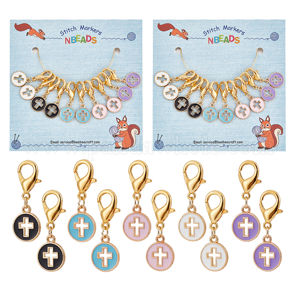 Плоские, круглые, из сплава эмали, с подвеской в виде креста, маркеры петель с замком, маркер стежка с застежкой «лобстер» из цинкового сплава (02H6K2)