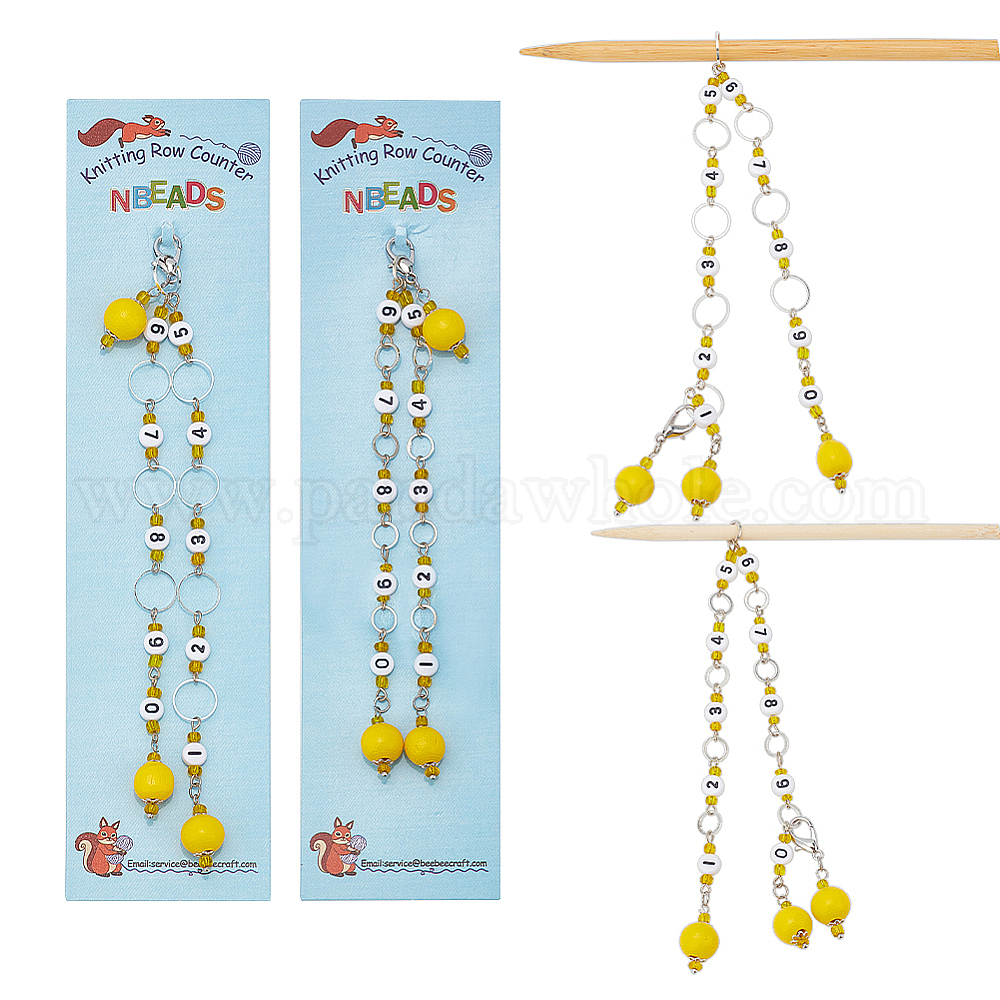 Кулон из натурального дерева вязание встречных цепочек, с латунным кольцом, непрозрачная акриловая бусина с номером, подходит для игл до 10мм