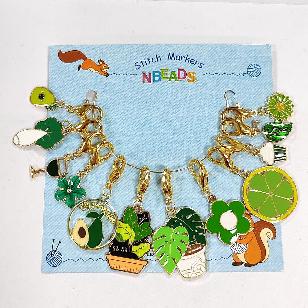 12 шт. 6 стиль зеленый цвет тема сплав эмаль кулон замки маркеры стежка, застежки «лобстер» из цинкового сплава маркеры петель, растения и еда